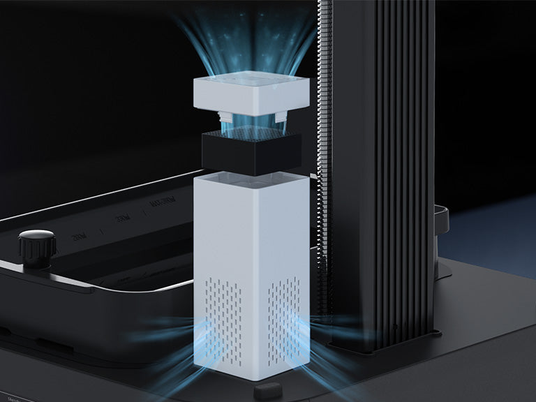 The 18 mm high-density activated carbon filter, weighing 17 grams, is designed to efficiently capture and neutralize odor molecules produced during printing.
