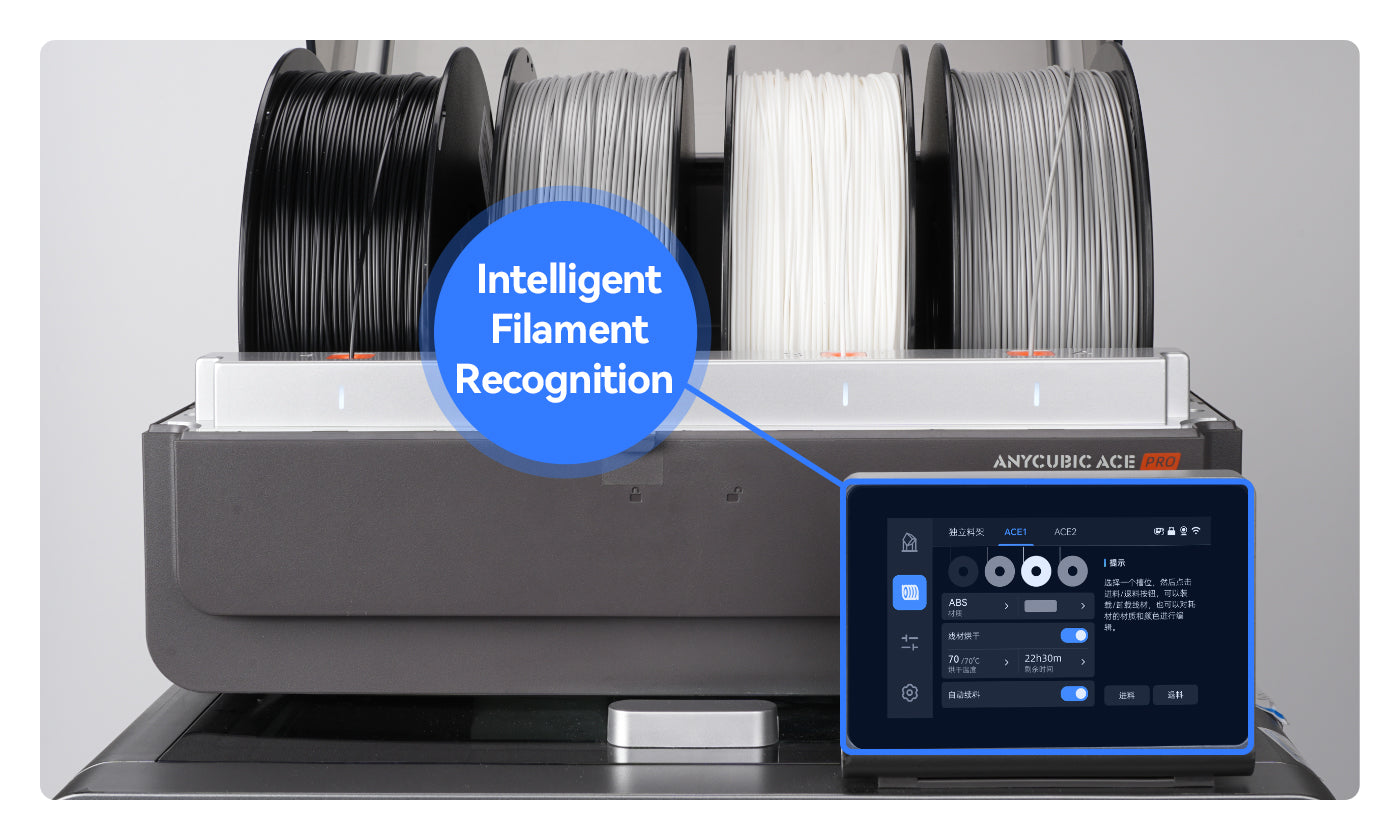 Anycubic ABS filament is equipped with an Intelligent Identification Filament system that automatically identifies the filament and applies optimal settings when used with the ACE Pro printer. This streamlined process helps achieve an efficient, hassle-free printing experience. Note that the Intelligent Identification Filament function requires an internet connection and is compatible only with Anycubic filaments supporting this feature.