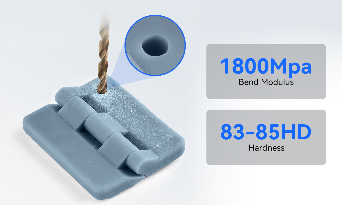 Anycubic ABS-Like Resin 2.0 delivers an 83–85HD hardness for extreme durability and a 1800 MPa bend modulus to resist brittle breaks. drill, tap, and machine your prints effortlessly—this is true toughness.
