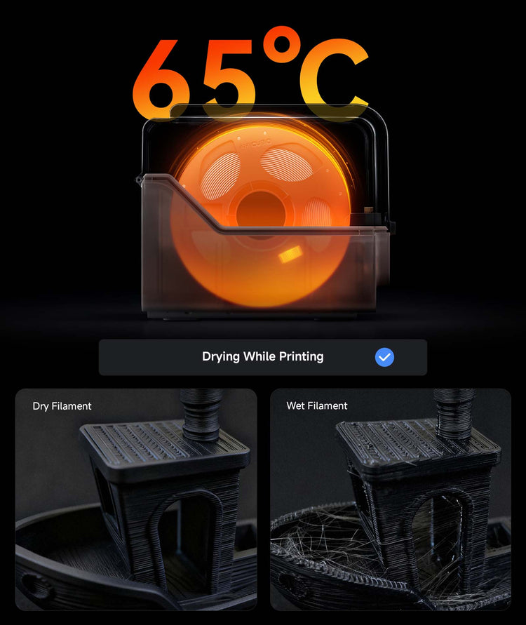 Want to print perfect models? Filament drying is key. The ACE 2 Pro supports simultaneous drying and printing, keeping the filaments as fresh as the day they came in.