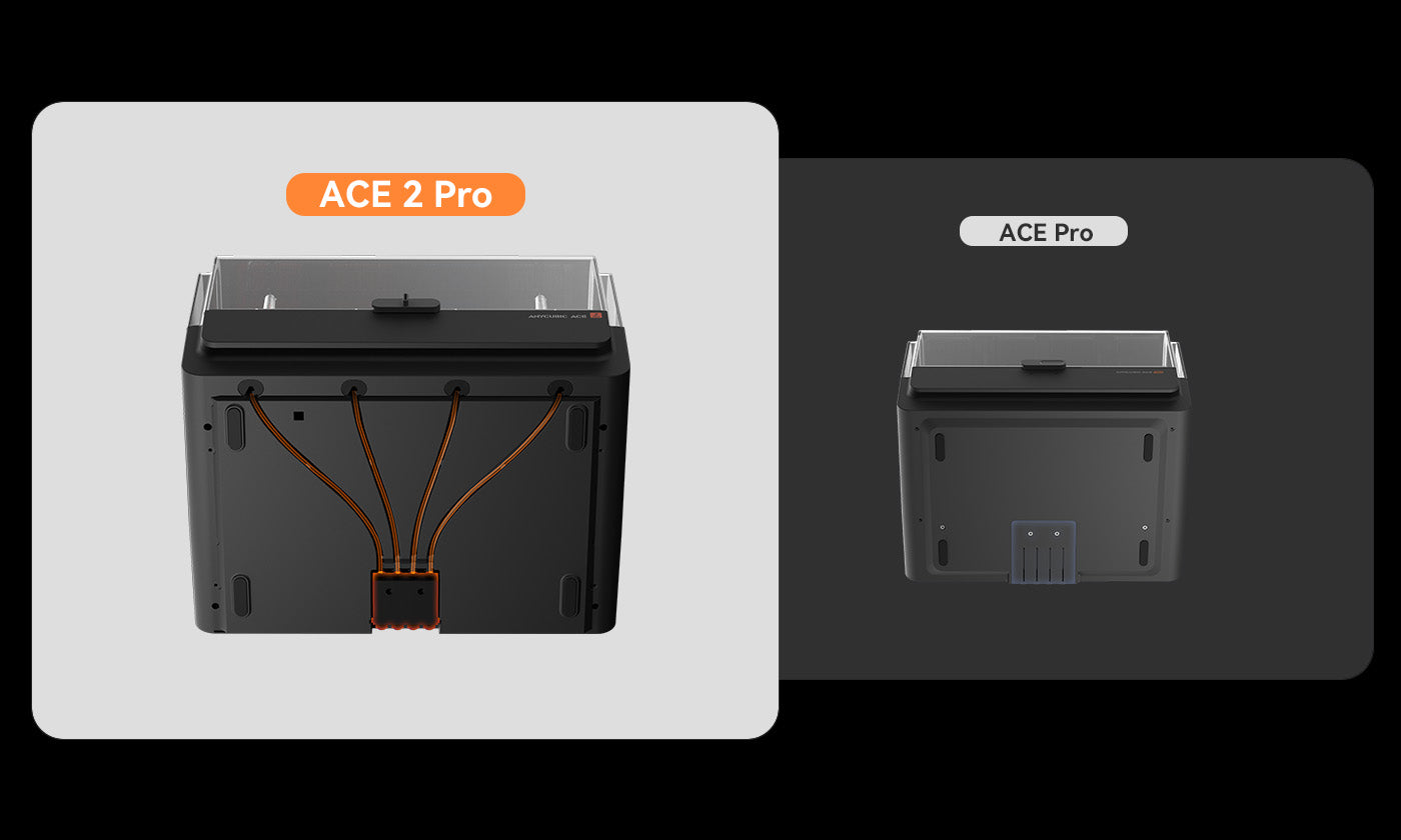 *[1] ACE Pro has a feed rate of 25 mm/s, with a filament change time of approximately 84 seconds. ACE 2 Pro has a feed rate of 50 mm/s, with a filament change time of approximately 56 seconds. Note that filament change times may vary with future firmware updates. Data source: Anycubic Lab.