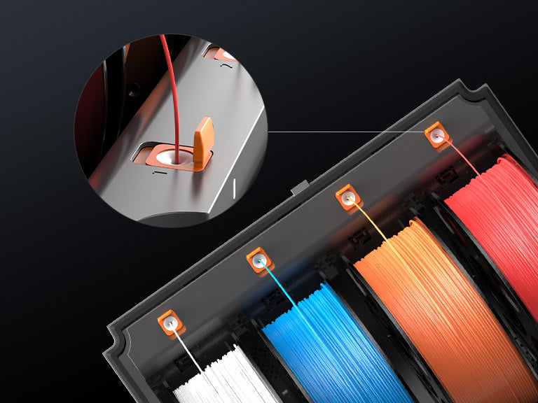 Engineered for maximum reliability, the new system features four independent brushless motors and a next-generation buffering mechanism. These components work together to ensure smooth, jam-free filament feed and retraction for every channel.