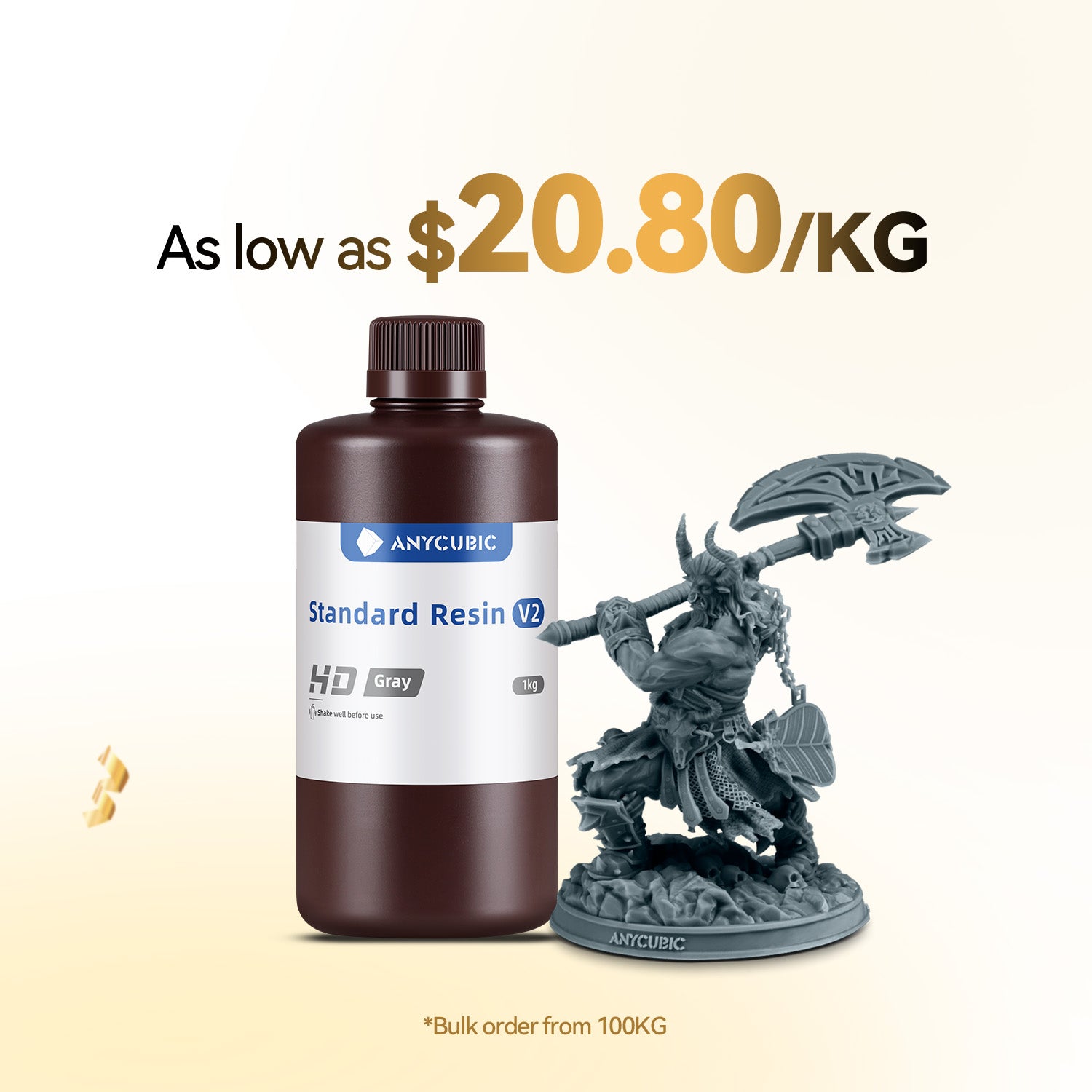 Based on the classic Anycubic standard resin, the Anycubic standard resin V2 further enhances toughness, boasting an increase of 93% in elongation at break. The finished models are resistant to impact, durable, and less prone to breaking, while still maintaining a certain degree of flexibility.